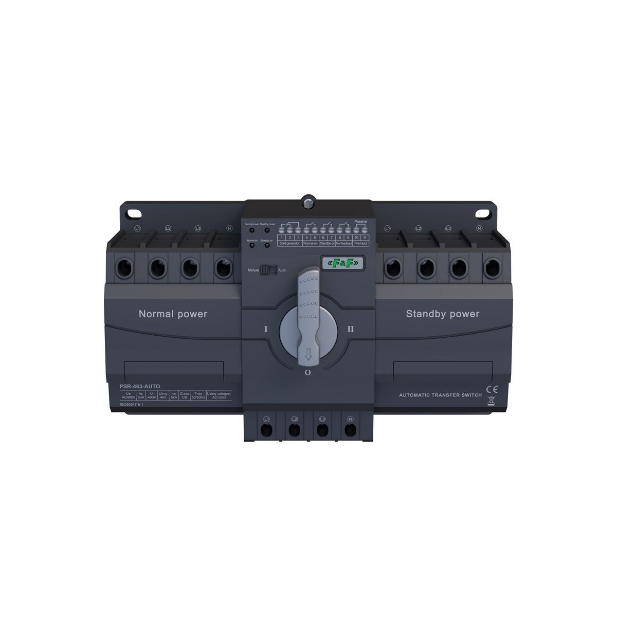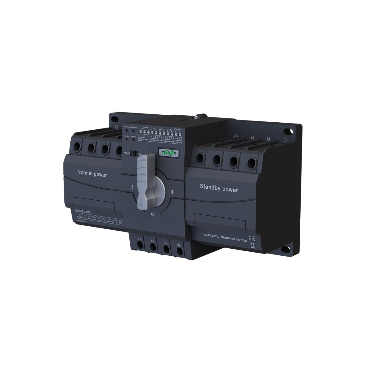 PSR-463-AUTO automatycznie przełącza zasilanie między siecią główną a pomocniczą np. pomiędzy dwiema liniami zasilającymi lub pomiędzy linią zasilającą, a agregatem prądotwórczym, zapewniając ciągłość pracy urządzeń. Przeznaczony jest do pracy w sieciach AC 50/60 Hz o napięciu 230/400 V. Może obsługiwać prąd do 63 A.